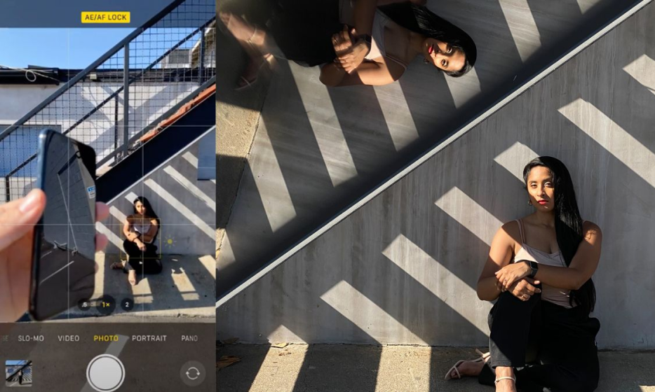 Eine der einfachsten Möglichkeiten, um zu beeindrucken, ist die Verwendung eines Fensters oder einer Glastür, um eine Reflexion des Motivs oder der Aussicht zu erzeugen. Bessere Ergebnisse erzielen Sie, wenn Sie das Telefon links von Ihnen an ein Fenster lehnen, da sich die Kamera eines iPhones in der oberen rechten Ecke der Rückseite des Telefons befindet. Eine weitere gute Möglichkeit, unterwegs eine Reflexion zu erzeugen, ist die Verwendung des Telefons einer anderen Person oder die Anschaffung eines ND-Filters. Sie können eines dieser beiden Objekte nahe an die Linse Ihres iPhones halten und so eine Reflexion erzeugen.